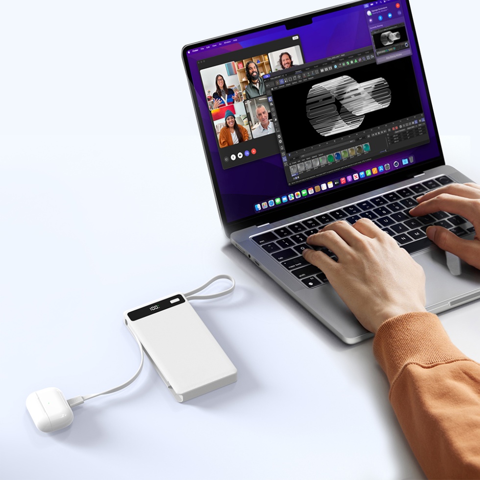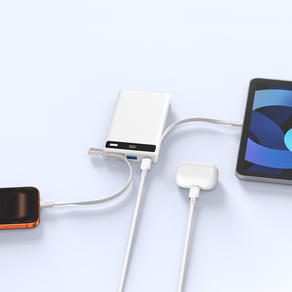 P36 Portable Type C Output 22.5W Fast Charging 10000mah Power Bank Built-in Two Cables